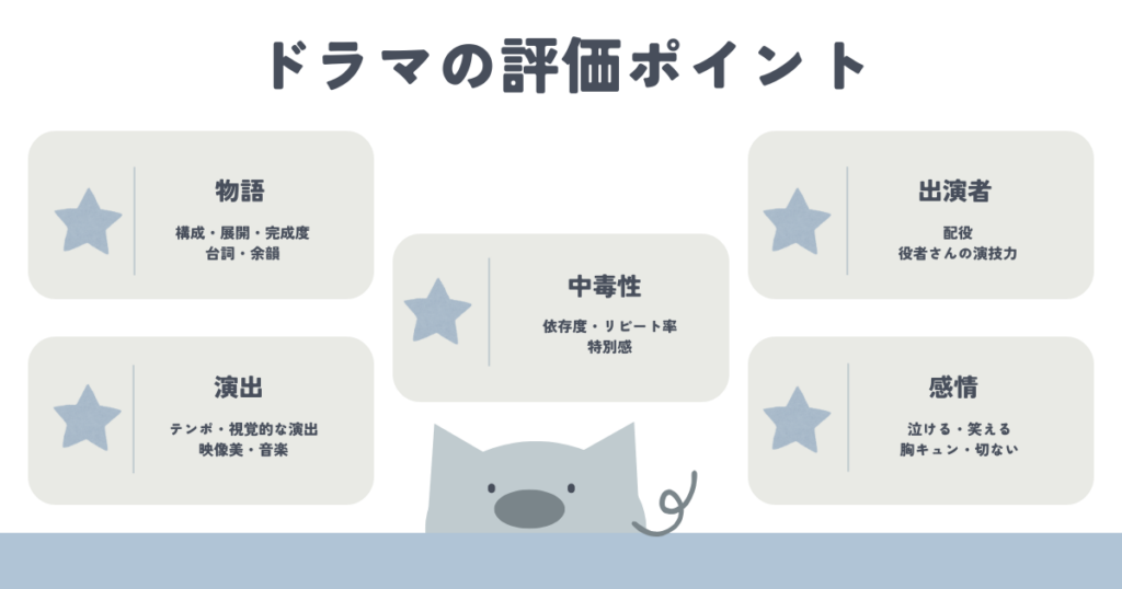 全話視聴して感じた満足度を5つの指標で評価してみました。